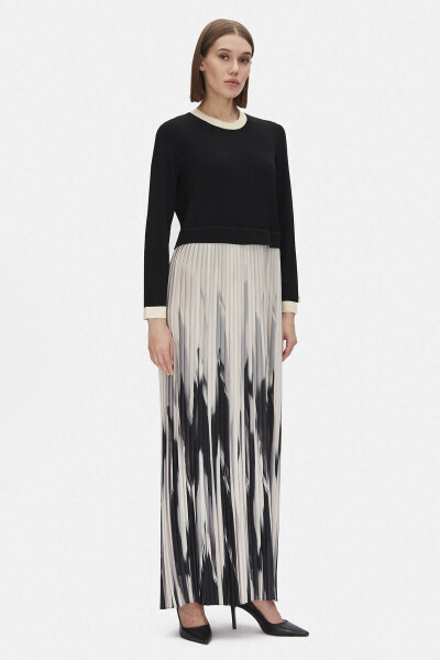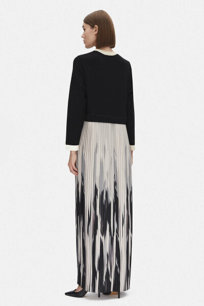 Sadeliği hareketlendiren etek kısmındaki desen detayıyla öne çıkan bu triko elbise, günlük stilinize özgün bir dokunuş katar. Yumuşak ve esnek triko kumaşı sayesinde konforlu bir kullanım sunar. Desenli etek bölgesiyle farklı ve zarif bir siluet oluşturur. Hem tek başına hem de ceketlerle kombinlenebilir.