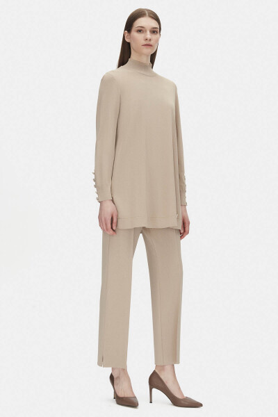 Uzun Kollu Triko Bej Tunik