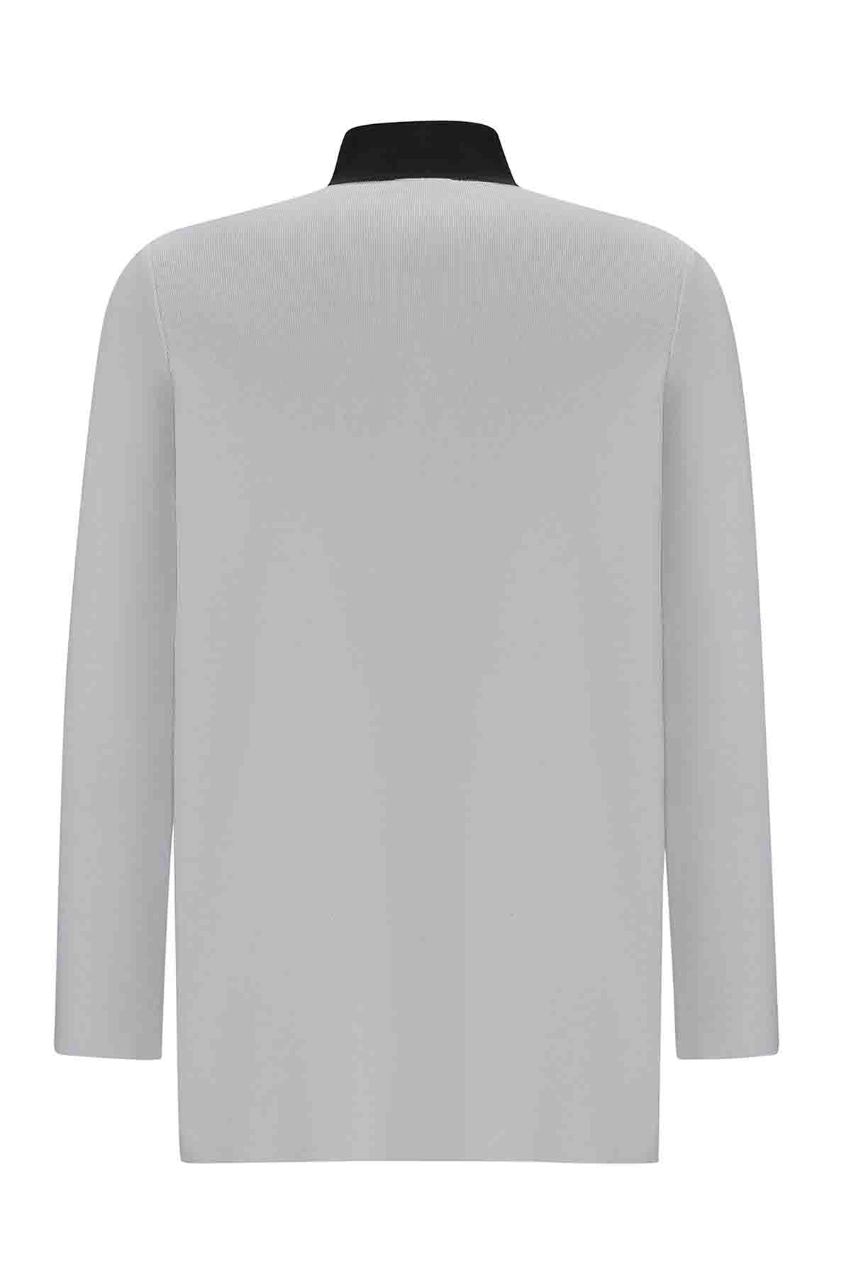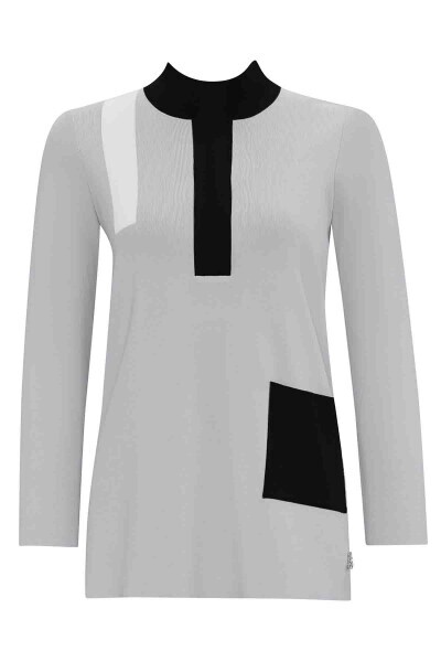 Dik Poplin Yaka Triko Siyah Tunik