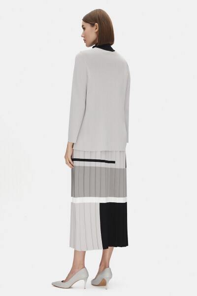 Önü Yırtmaç ve Tiktak Detaylı Triko Tunik Stone