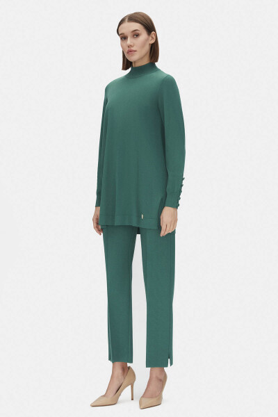 Boru Paça Triko Yeşil Pantolon