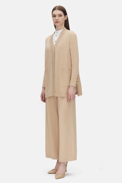 Touche Me koleksiyonunun modern çizgilerini yansıtan bu bol paça triko pantolon, esnek ve yumuşak yapısıyla gün boyu rahatlık sunar. Minimalist tasarımı sayesinde şık ve sade kombinlerin vazgeçilmez tamamlayıcısıdır. Rahat kesimiyle her adımda özgürlük hissi verir.