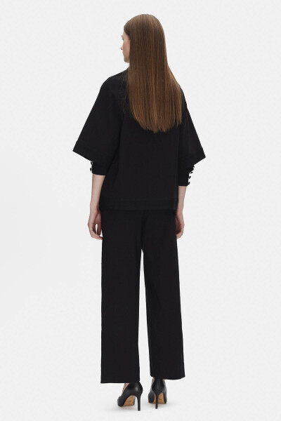 Rahat kesimi ve dökümlü yapısıyla hem konforlu hem de şık bir duruş sunan bol paça kumaş pantolon, gardırobunuzun joker parçalarından biri olmaya aday. Hafif ve akıcı kumaşı sayesinde gün boyu serinlik sağlarken, yüksek bel detayıyla vücut proporsiyonunu dengeler. Gömlek, bluz ya da tuniklerle kolayca kombinlenebilir, hem günlük hem ofis stiline uyum sağlar.