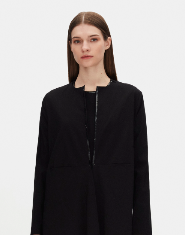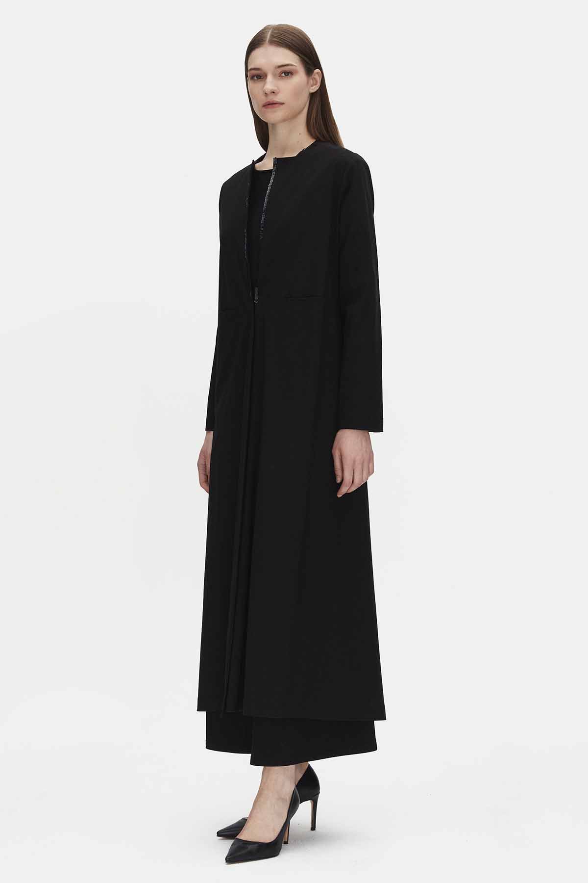 T25PF-8004 Yakası Pul Detaylı Ceket BLACK