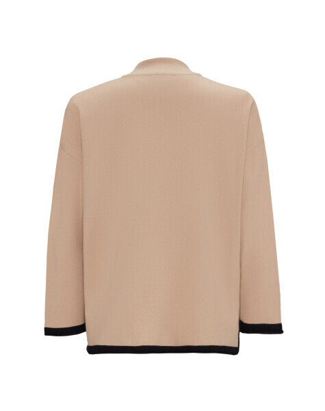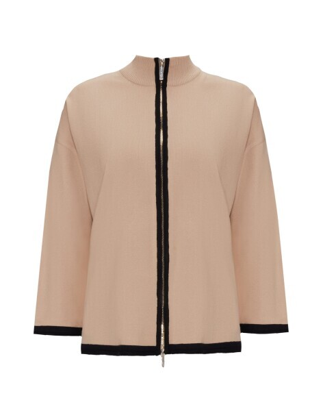 T25PF-8008 Dik Yaka Fermuarlı Triko Ceket CAMEL