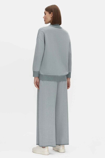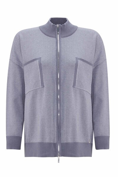 T25PF-8009 Dik Yaka Fermuarlı Cepli Triko Ceket BULLET