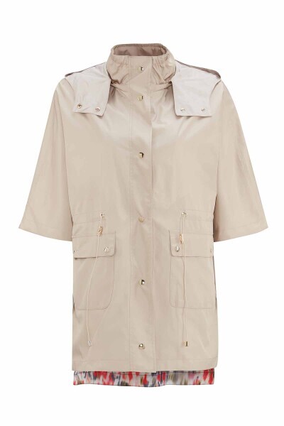 T25PF-8204 Astarı Desenli Kumaş Yağmurluk BEİGE