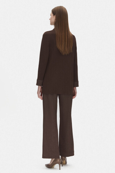 T25PF-8205 Denim Detaylı Triko Ceket 1084-CACAO
