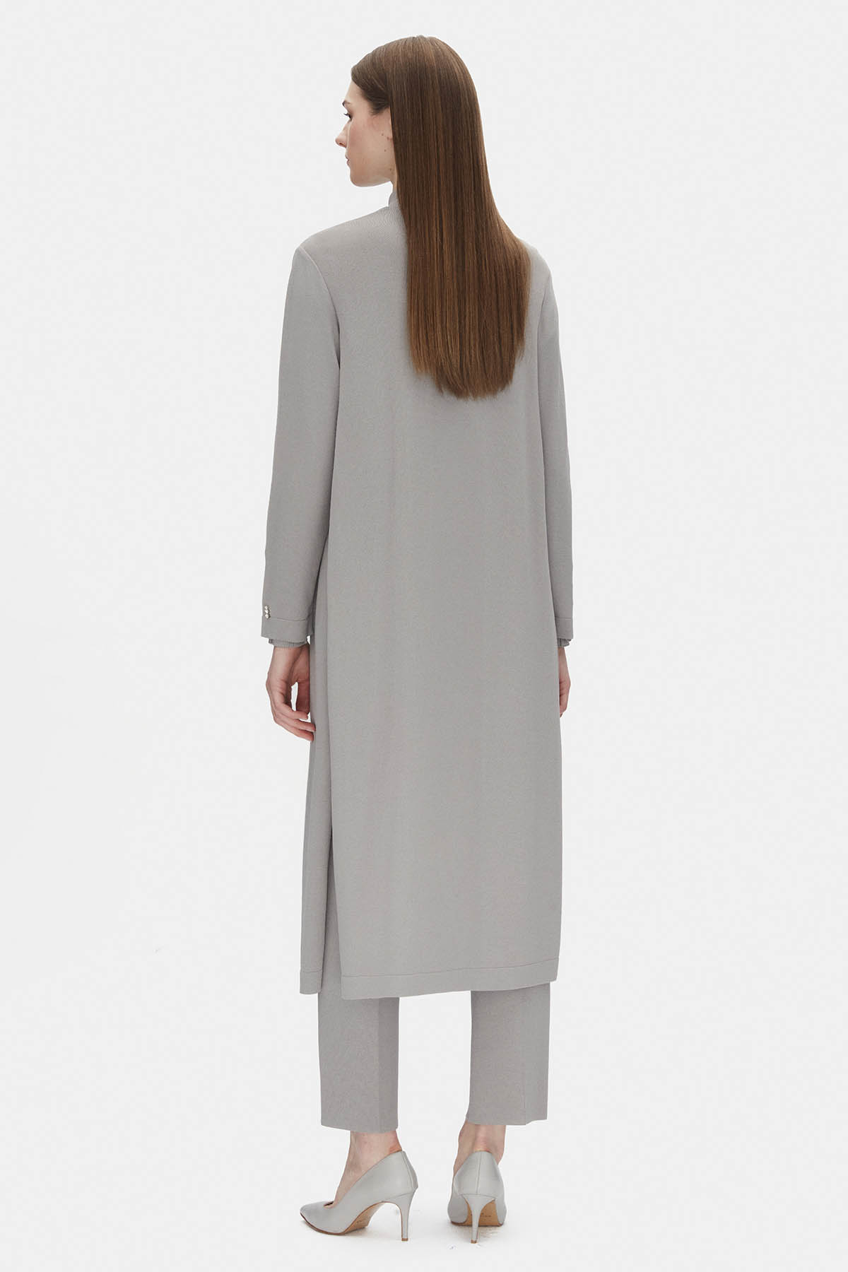 Düz Renk Uzun Triko Koyu Gri Hırka