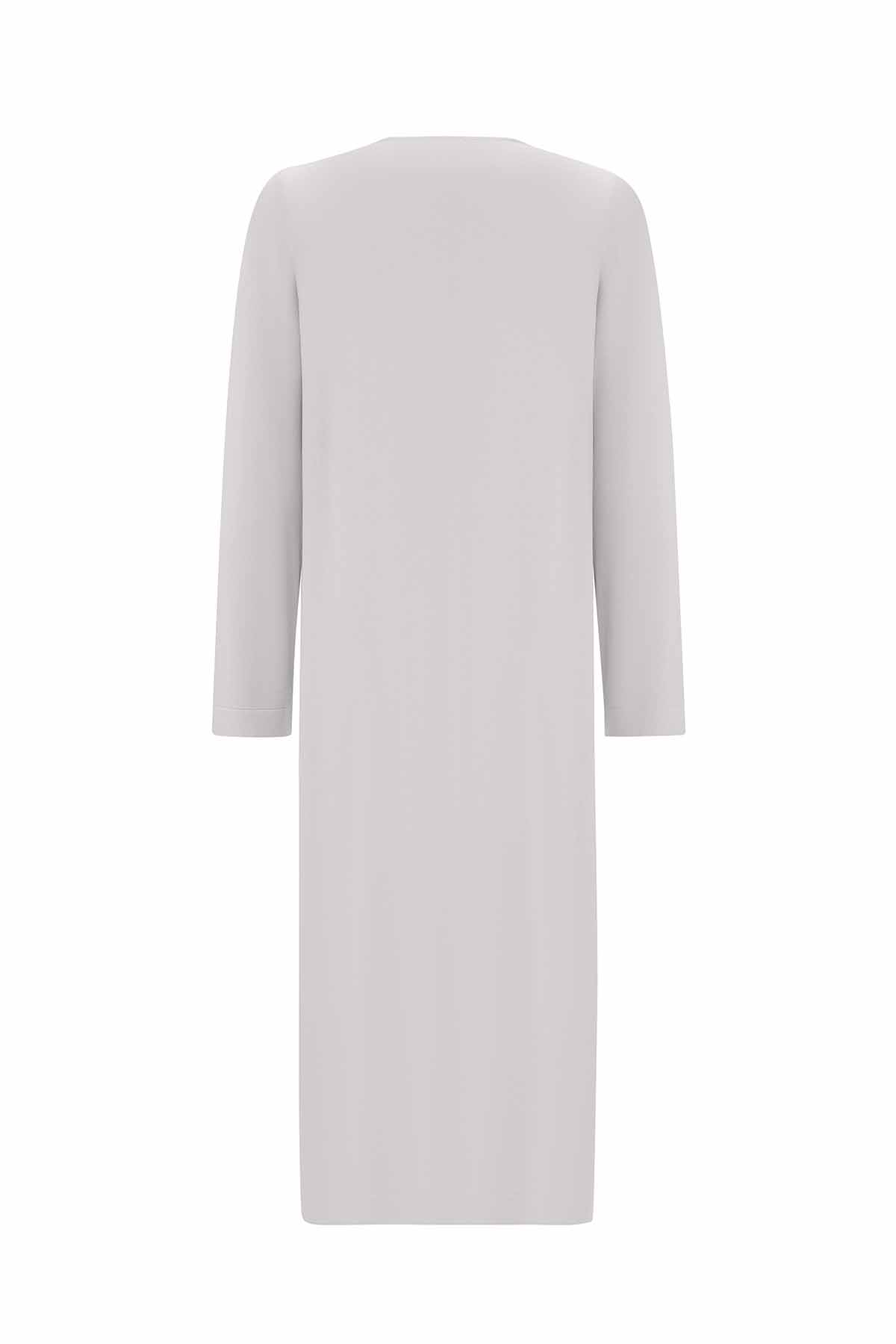 T25PF-9003 Düz Renk Uzun Triko Hırka 1398-LIGHT GREY