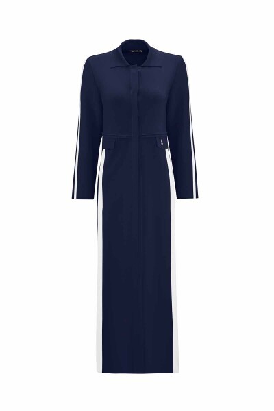 Yırtmaç Detaylı Uzun Triko Lacivert Hırka