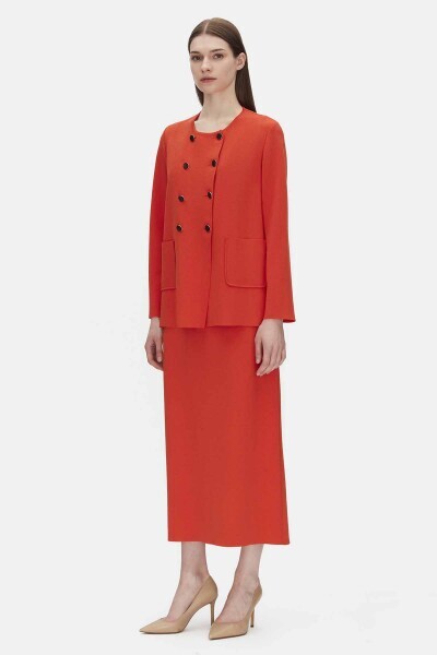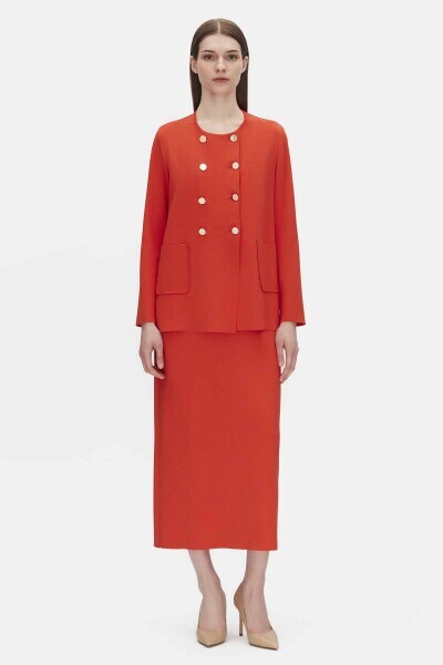 T25PF-9203 Kruvaze Düğmeli Kısa Hırka 1015-RED