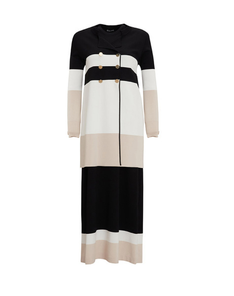 İnce Çizgili Hırka Elbise Siyah Takım