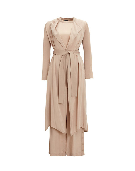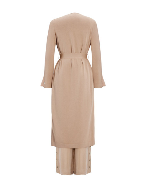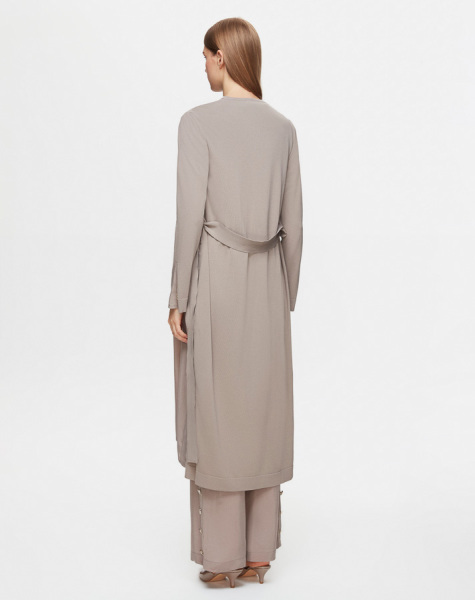 Şal Yaka Cupro Triko Hırka Tunik Vizon Takım