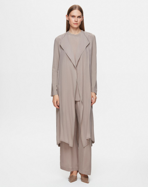 Şal Yaka Cupro Triko Hırka Tunik Vizon Takım