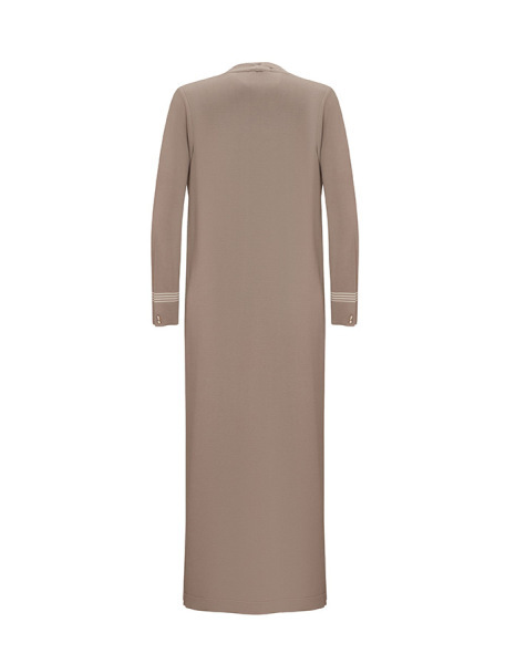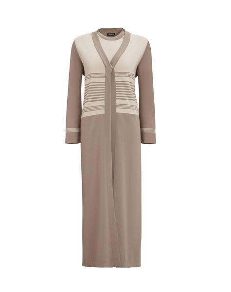 İnce Çizgili Hırka Elbise Vizon Takım
