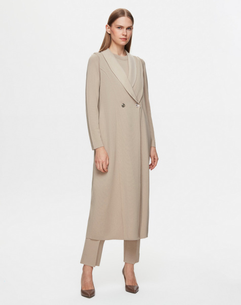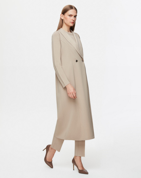 Cupro Yaka Düğmeli Şık Taş Rengi Yelek