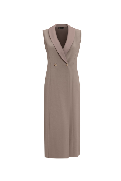 Cupro Yaka Düğmeli Şık Vizon Yelek