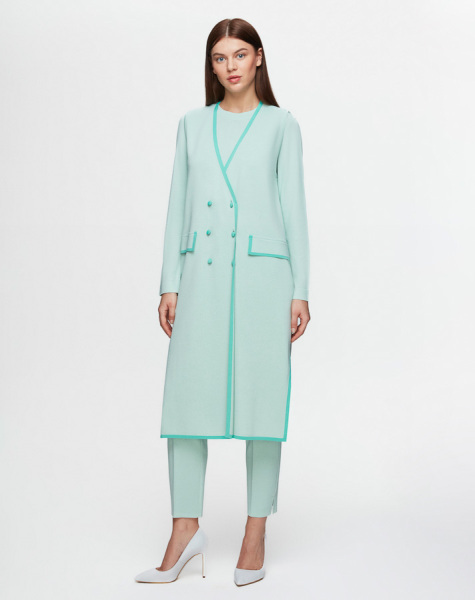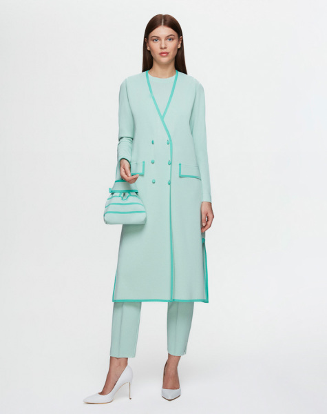 Cep Kapaklı Kruvaze Yaka Triko Açık Yeşil Yelek