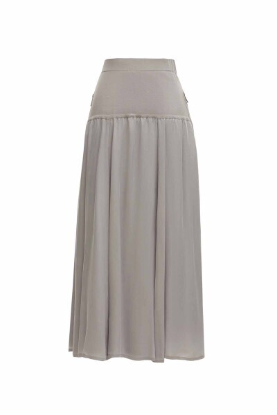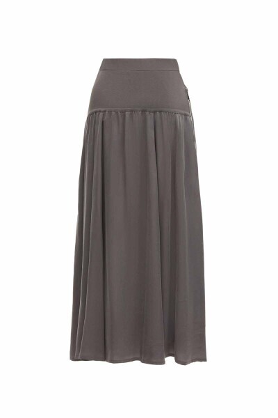 Önü Düğmeli Cep Kapaklı Triko Kloş Gri Etek