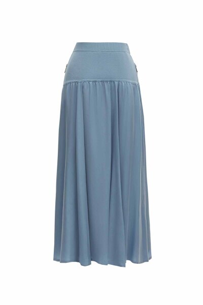 Önü Düğmeli Cep Kapaklı Triko Kloş Vizon Etek
