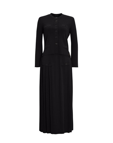 Önü Düğmeli Cep Kapaklı Triko Kloş Siyah Etek