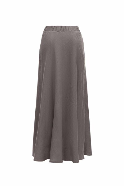 Düz Renk Keten Kloş Antrasit Etek