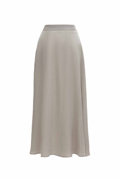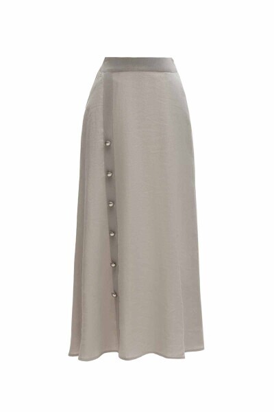Düğme Detaylı Triko Tiktaklı Keten Gri Etek