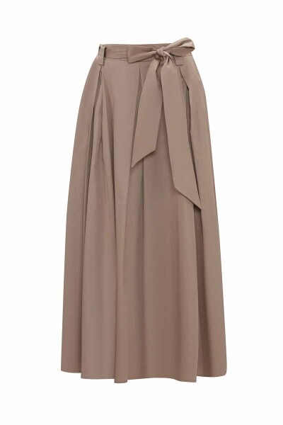 T25Y-2015 Beli Kuşaklı Rahat Kesim Kumaş Etek MİNK