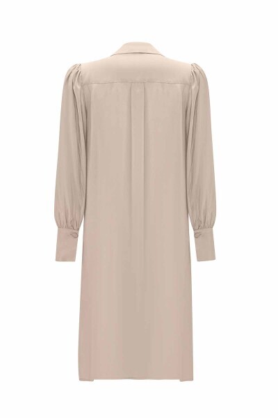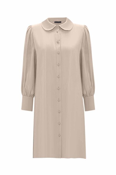 Bebe Yaka Balon Kollu Cupro Taş Rengi Tunik