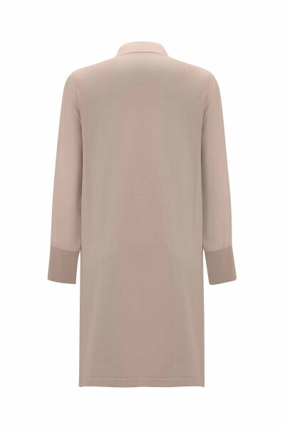 Yanları Düğmeli Cupro Uzun Taş Rengi Gömlek
