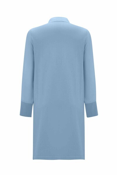 Yanları Düğmeli Cupro Uzun Mavi Gömlek
