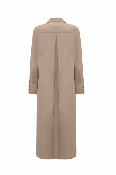 Geometrik Desenli Pamuklu Uzun Taş Rengi Gömlek