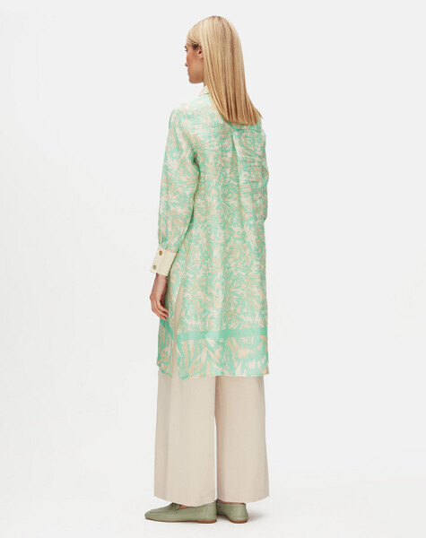 Doğal keten dokusu ve zarif desenleriyle öne çıkan bu gömlek, sedef düğme detaylarıyla şıklığını tamamlıyor. Hafif ve nefes alabilen yapısı sayesinde yaz aylarında ferah bir kullanım sunar. Rahat kesimiyle hareket özgürlüğü sağlarken, estetik görünümüyle hem gündelik kombinlerde hem de özel anlarda tercih edilebilir. Doğal şıklığı sevenler için zamansız bir parça.