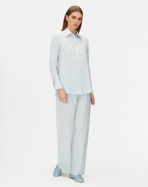 Sedef Düğmeli Düz renk Keten Mavi Gömlek
