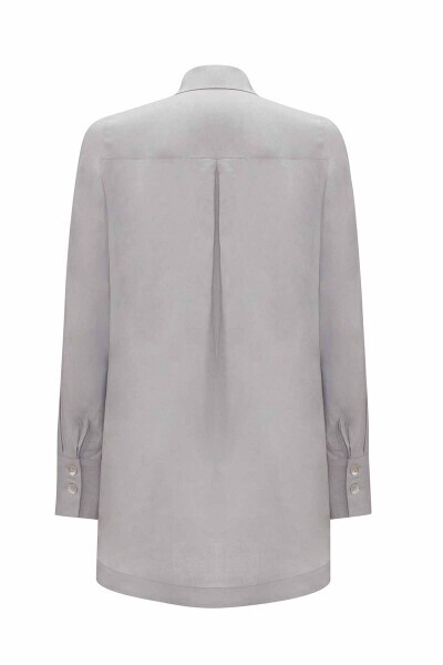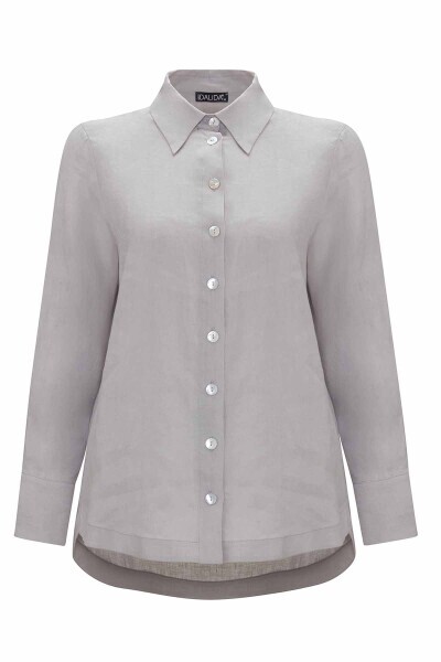 Sedef Düğmeli Düz renk Keten Gri Gömlek