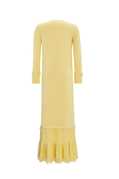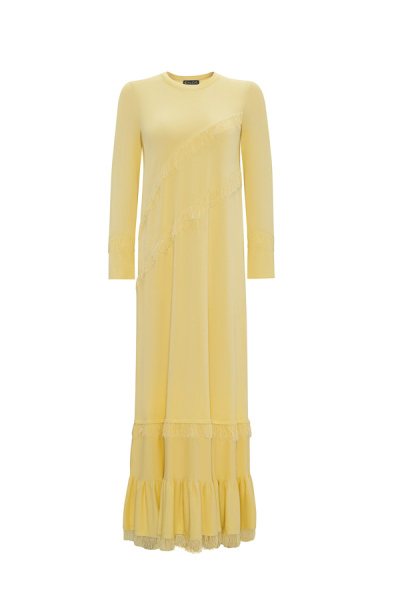 Püskül Detaylı Triko Uzun Sarı Elbise