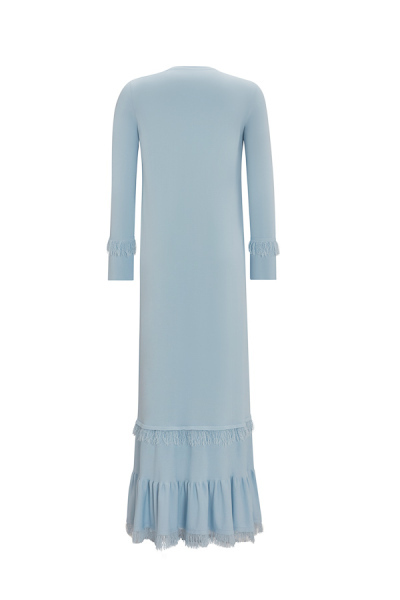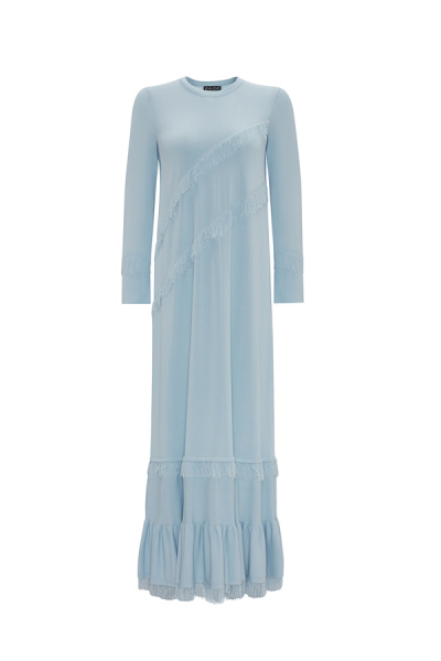 Püskül Detaylı Triko Uzun Açık Mavi Elbise