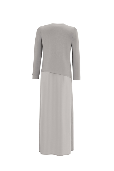 Asimetrik Kesim Cupro Triko Gri Elbise
