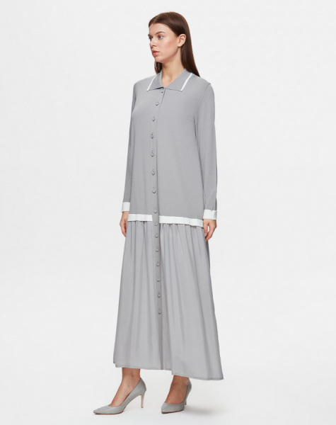 T25Y-4002 Cupro-Triko Gömlek Elbise 1237-MİNK