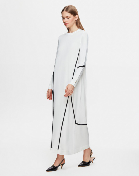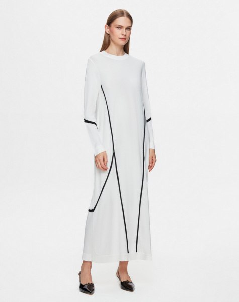 T25Y-4005 Renk Şeritli Triko Elbise 1012-ECRU