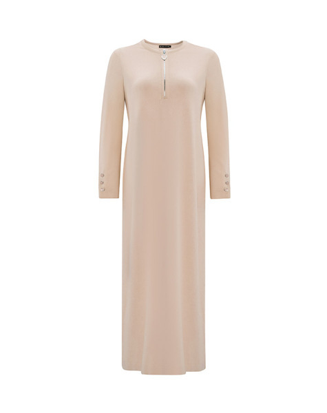 T25Y-4007 Yakası Fermuarlı Triko Uzun Elbise 1081-SALMON