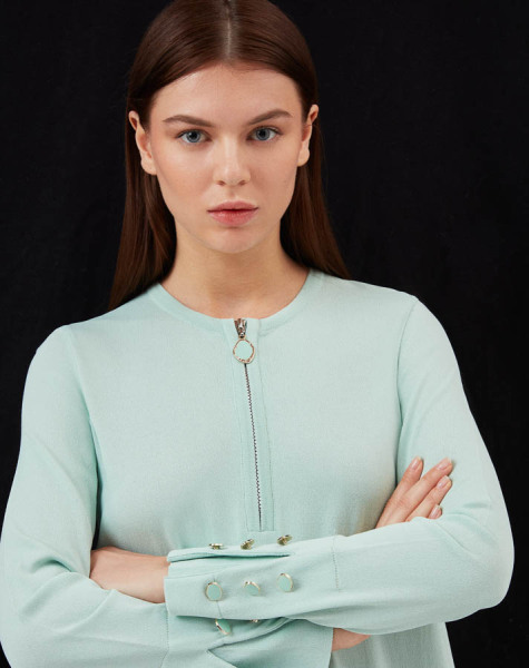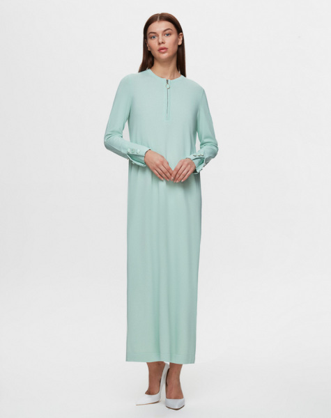 Yakası Fermuarlı Triko Uzun Elbise MİNT 1243-LIGHT