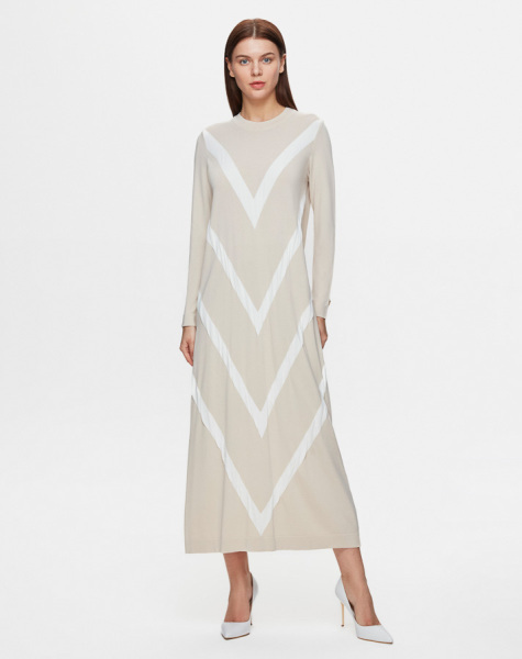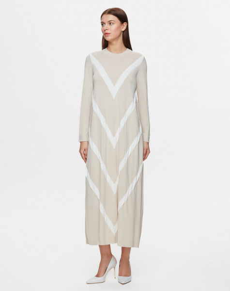 Renk Detaylı Kolsuz Triko Gri Elbise