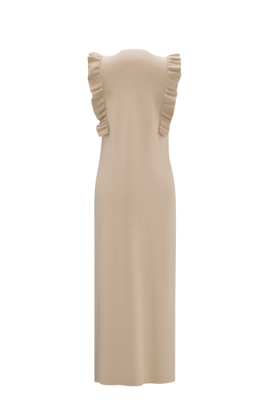 Yanları Fırfırlı Kolsuz Triko Kum Rengi Elbise