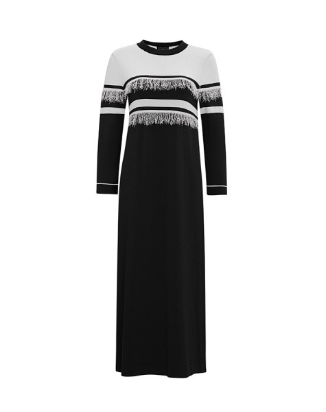 Çizgi ve Püskül Detaylı Triko 1241-Camel Elbise