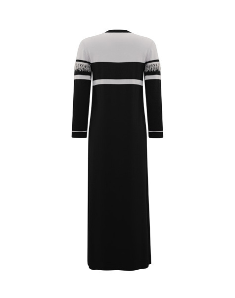 Uzun Kollu Astarlı Dantel Antrasit Elbise