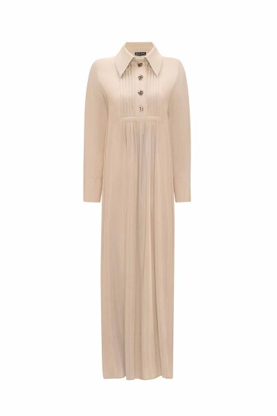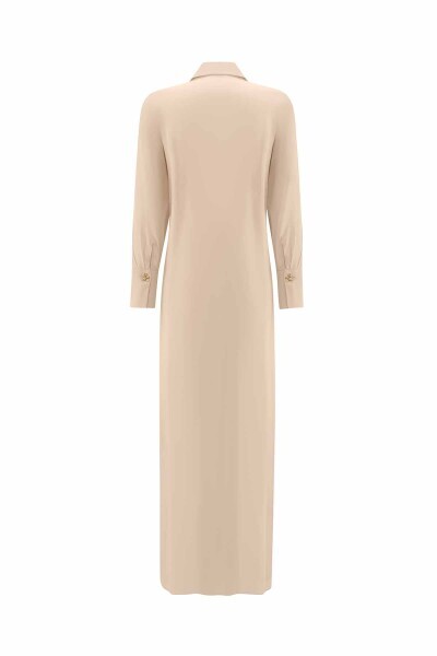 T25Y-4018 Gömlek Yaka Nervürlü Cupro Elbise STONE