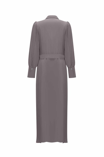 T25Y-4020 Düğme Detaylı Kuşaklı Gömlek Yaka Elbise ANTHRACITE