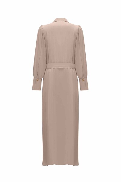T25Y-4020 Düğme Detaylı Kuşaklı Gömlek Yaka Elbise MİNK